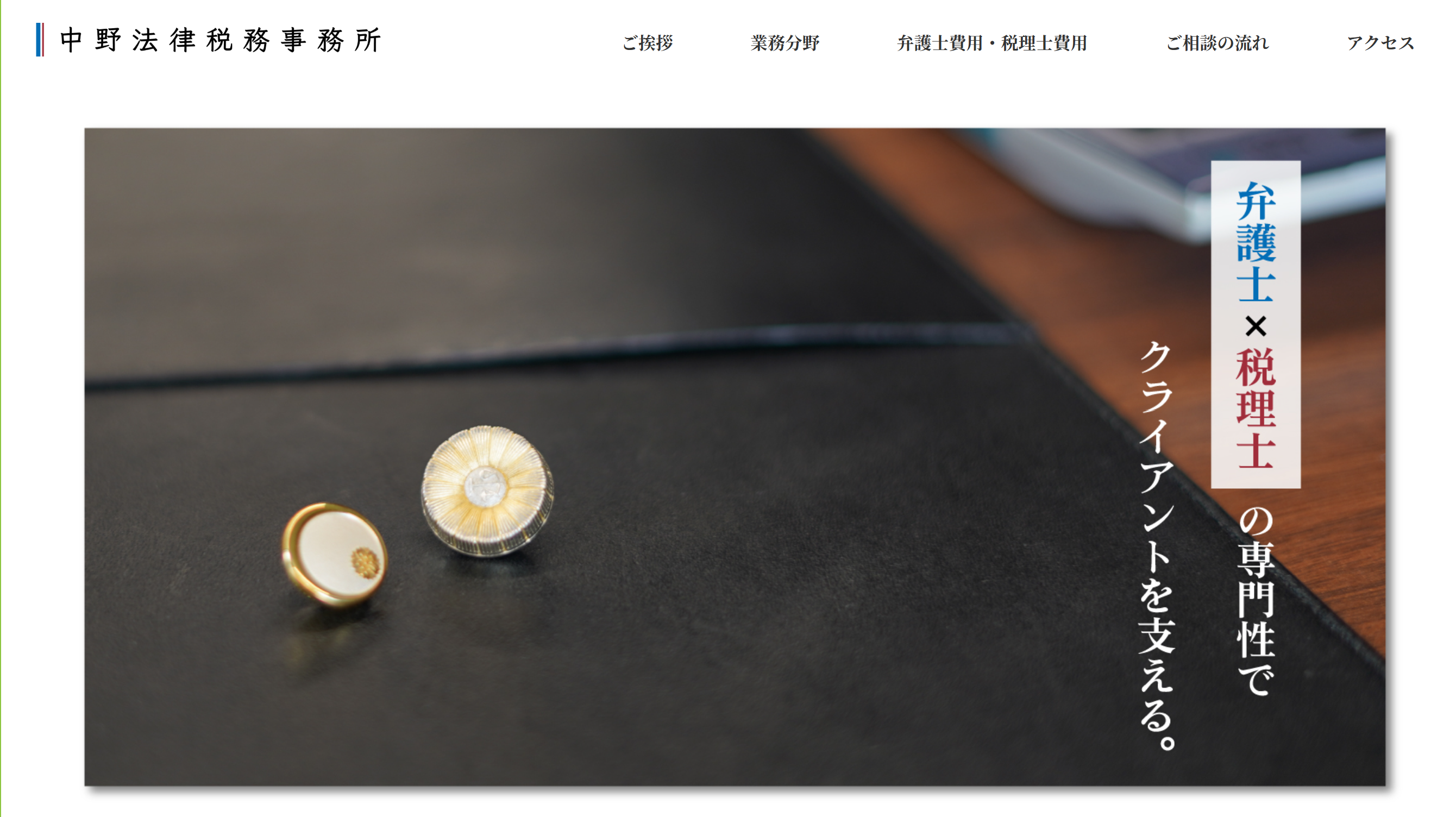 中野法律税務事務所という名前は、法律事務所のサービスと税理士事務所のサービスを同時に提供したい、という想いを込めて名付けました。
